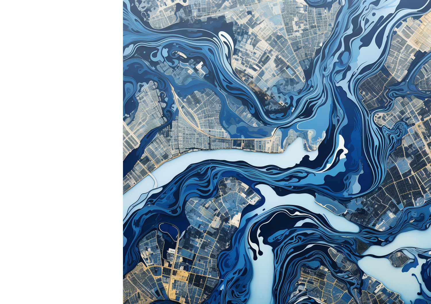 Image: Hui Theresa Yang, AI-Generated Image by Midjourney prompt: create a map of an ink painting of swirl lines of rivers between Beijing and Melbourne beyond the equator, these curved lines connect two cities in a bird view