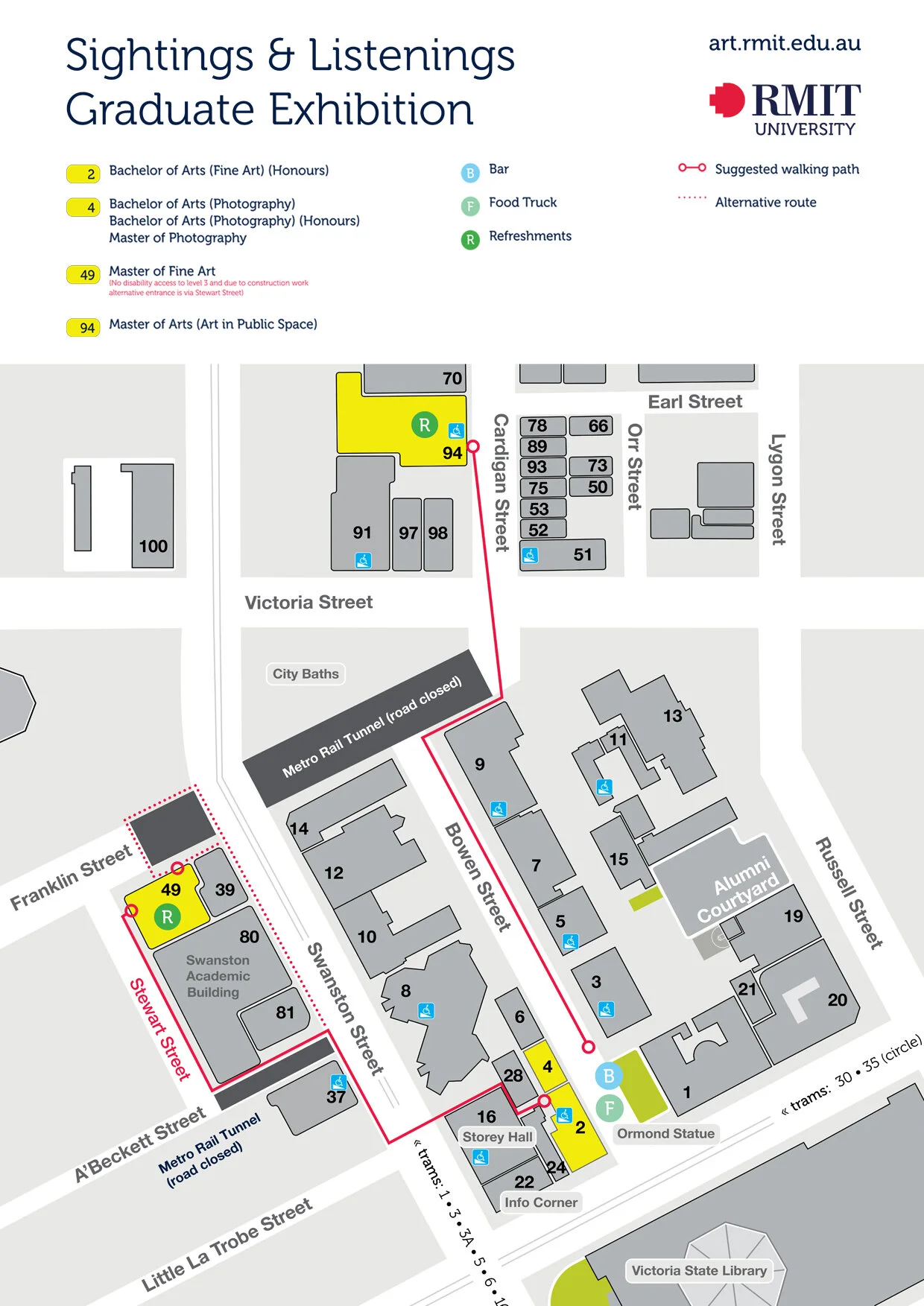RMIT University, Buildings 2 and 4 (Bowen Street off La Trobe Street, Melbourne), Building 49 (67 Franklin Street, Melbourne) and Building 94 (23–27 Cardigan Street, Carlton)